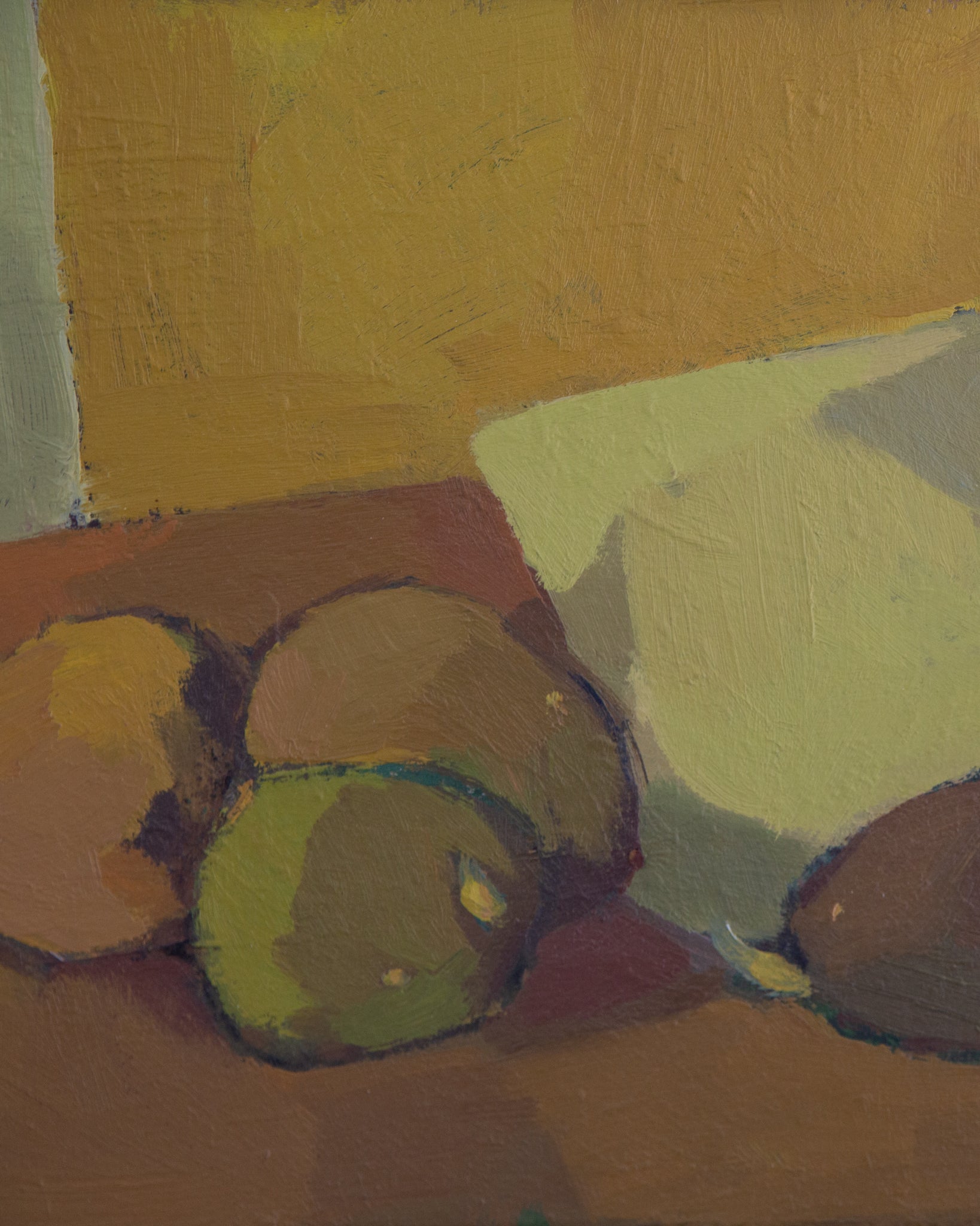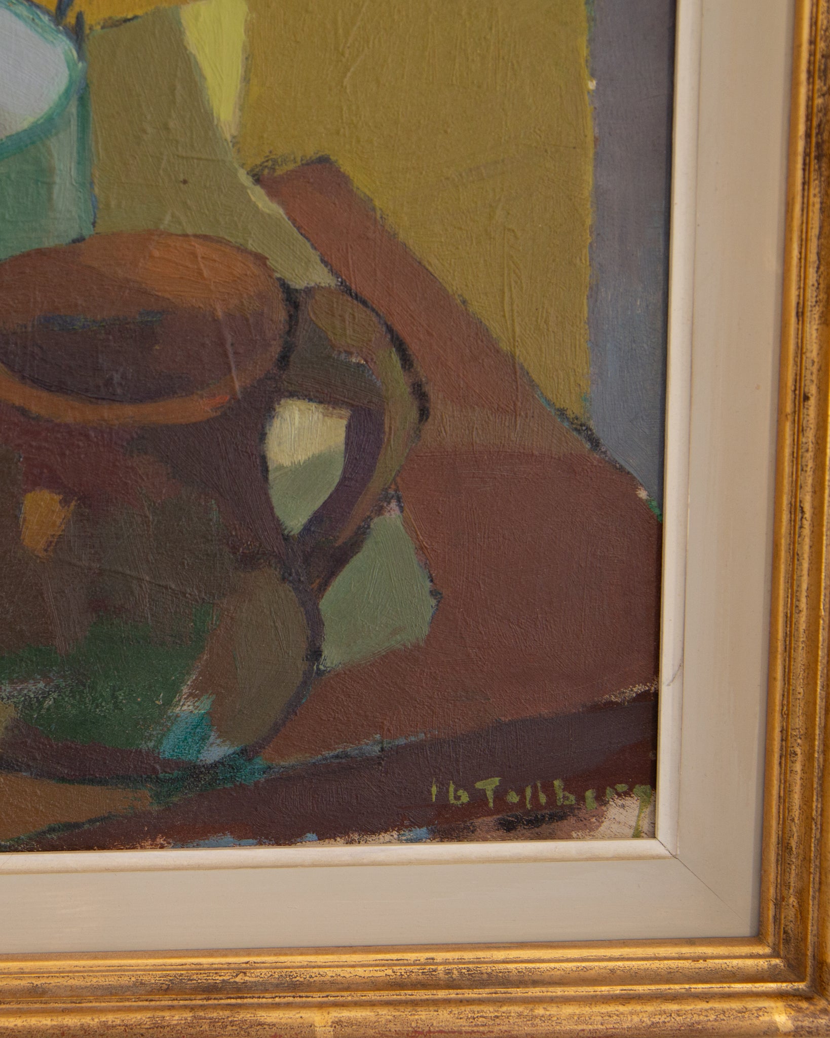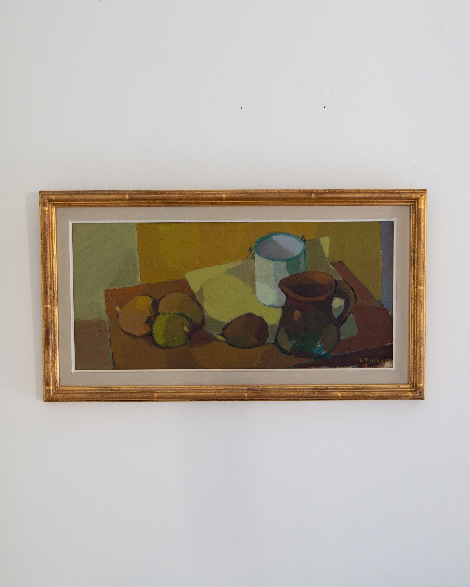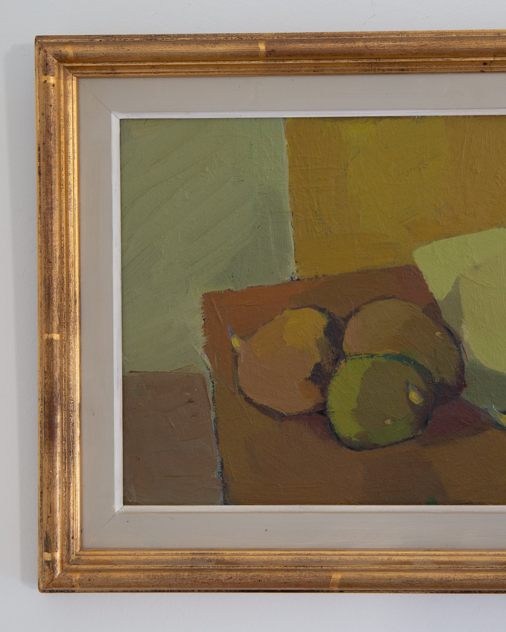 This mid-century oil painting is just stunning, I truly gasped when I saw it! The avocado green, mustard yellow, and warm browns are even more wonderful in person. To top it all off, it's in it's original gold frame and in excellent condition. This one is truly a showstopper.