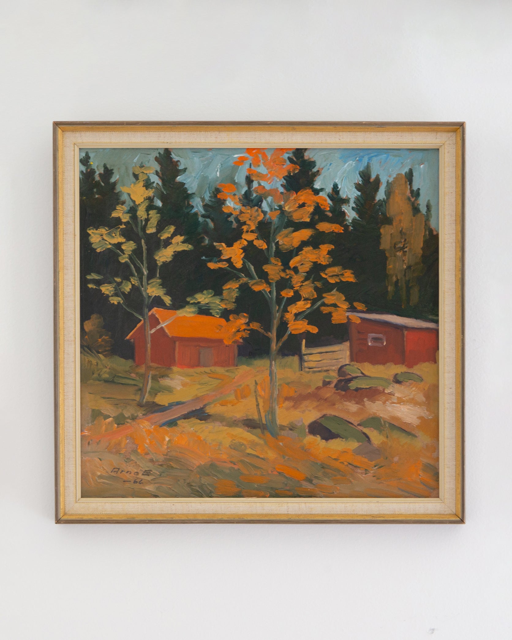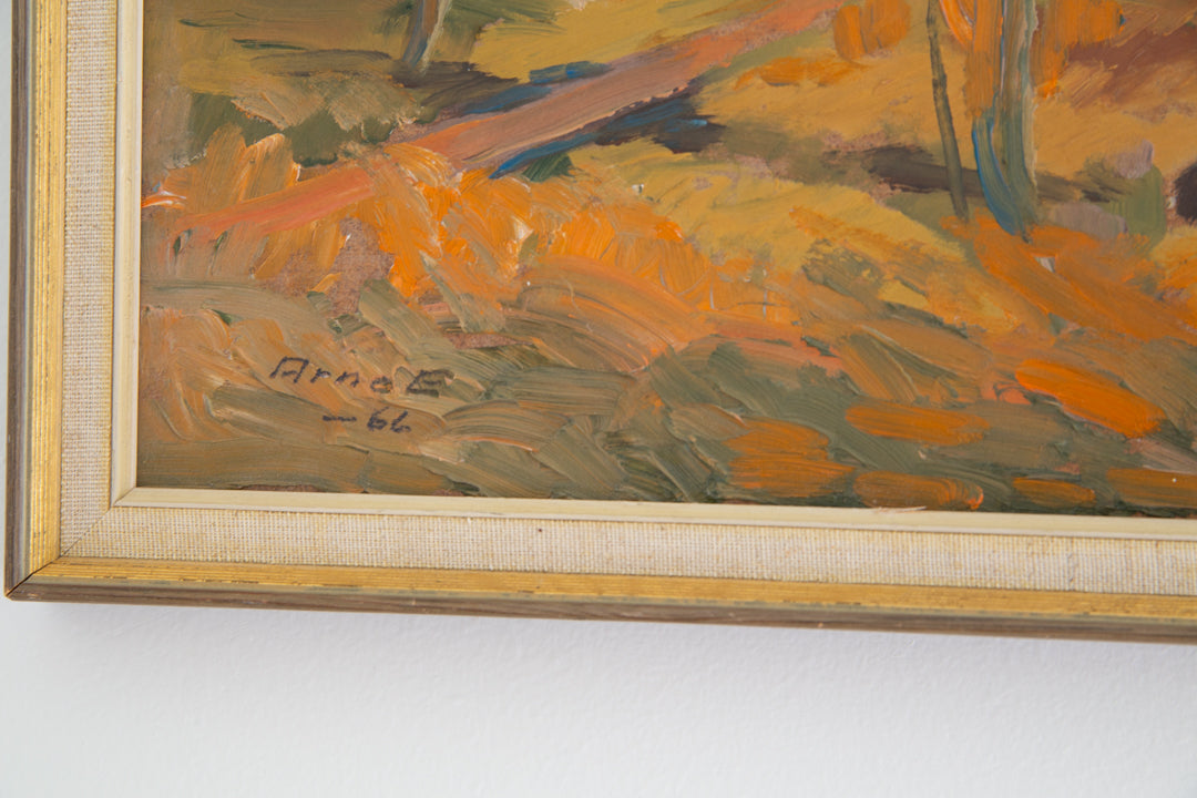 This vibrant and expressive landscape painting captures the beauty of the autumn season. Painted in 1966, this artwork showcases the artist's talent for capturing the beauty of the natural world.
